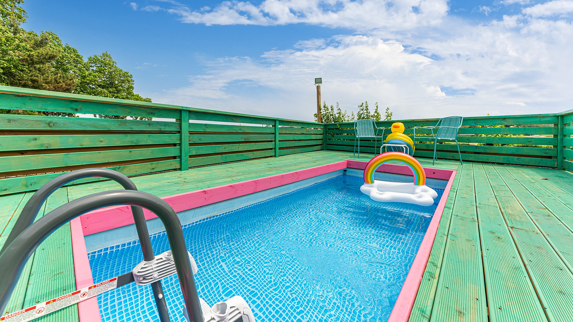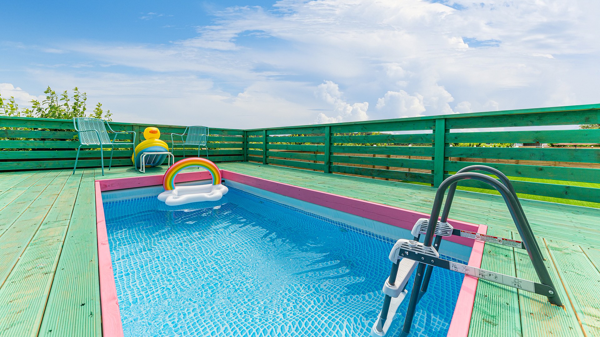개인정원의 개별수영장에서 자연의 멋진 풍경을 감상하며 사랑하는 가족 소중한 반려견과 즐거운 시간을 함께하세요.
